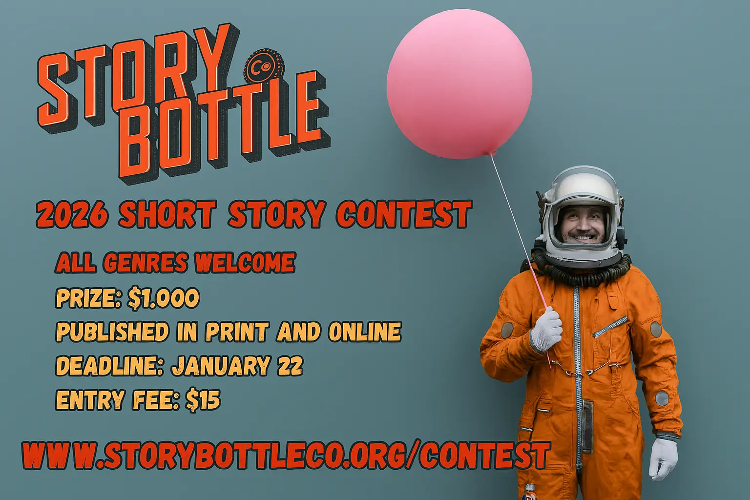 StoryBottle Co. seeks outstanding short stories in any genre or style. We’re drawn to stories with strong voices, memorable characters, and real stakes—whether literary, speculative, historical, or something weird and hard to categorize. The winner receives a $1,000 prize, publication online and in print, and ten copies of the issue. The winning story will also be published as a standalone chapbook. Runner-up and selected finalists may also be published. Entry fee: $15. Length: Up to 10,000 words. Guidelines and submission link: www.storybottleco.org/contest.